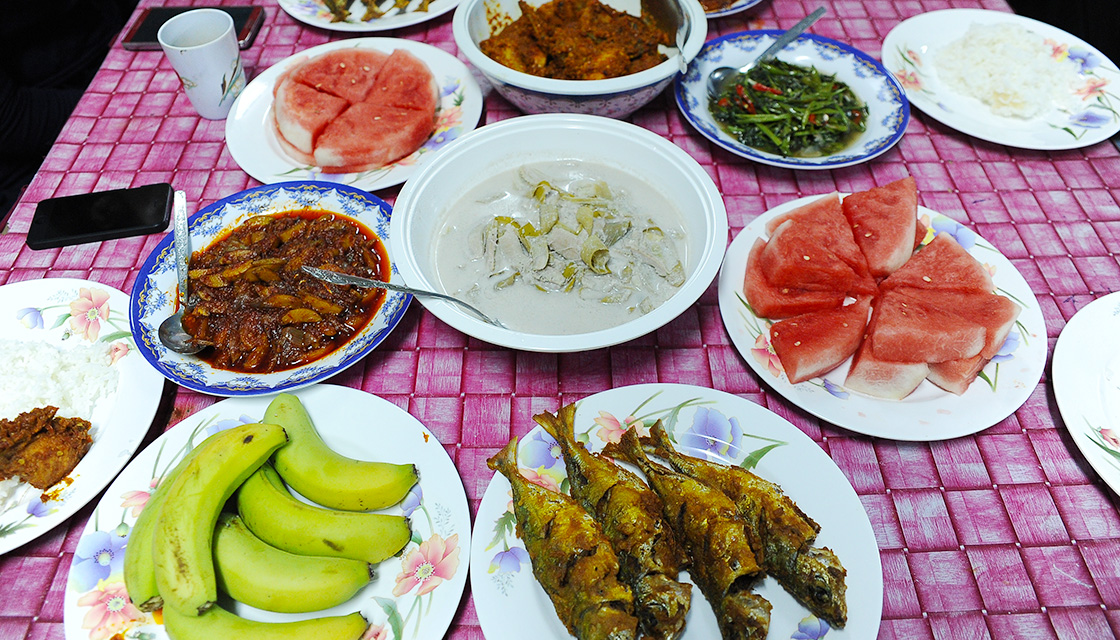 We hopped on our bikes again and spun to our next destination. At 33km, we were making our way to our last destination, 5. Kampung Lukut through Kampung Teminin Baru. The curtain changed from a plateau of palm trees to weeds as tall as us and a distinct mountain appeared. It was called the Gunung Panti, a bird sanctuary and also a famous area to spot the infamous Big Foot. After 14km of cycling from Kampung Teminin Baru, we entered the small village and the curtain dropped again, changing to rows of wooden houses. We were taken to a slower-paced lifestyle and so quiet a place that the only loud sound heard was coming from the turning of our wheels. This village hosts homestays, exactly where we would be ending our journey. But of course, nothing ends without a good home cooked lunch.