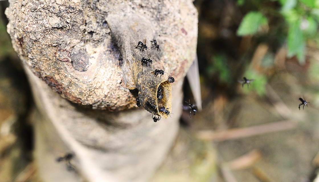 We continued cycling another 3km and stopped at 2) Min House Camp. This camp has rooms that can house up to 40 people and is handicap-friendly. It also has an open kitchen and tourists can rent bikes at only RM5 per day. We first headed to the Galeri Kelulut which is a gallery for the 3) Trigona bee species. These are stingless bees and in Malaysia we have about 60 species. The gallery houses all things related to the Trigona bees, from their pollens and honey combs, which were protected in a glass box. We had a good tour around, immersing in its history through words and images before getting a first-hand look at the process of the extraction of honey.