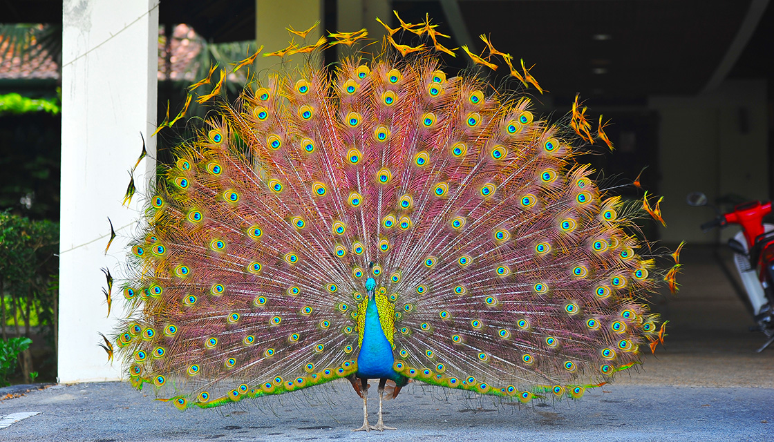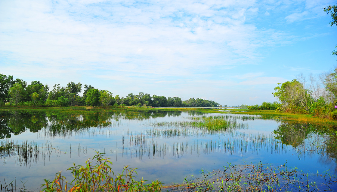 A 1. Peacock fanned its colourful tail as if it were greeting us upon the start of our exciting journey. From the restaurant of the wetlands, we rode into 2. ‘Rentis Typha’, an off-road trail cutting between Tasik Typha and Tasik Teratai. Fishing enthusiasts are allowed to fish at Tasik Typha, but not at Tasik Teratai. We caught sight of the Acacia trees on both sides as we passed along this trail, just before we took our first stop at a 3. wooden bridge to appreciate the beauty of both lakes.