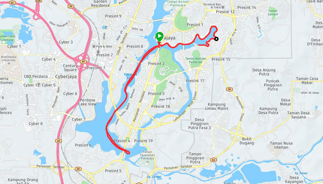 We set off from 6. Cruise Tasik Terminal following the nicely built walking/cycling path along the man-made Putrajaya Lake. This cycling path is ideally located within a garden of trees away from motorists on the main streets.