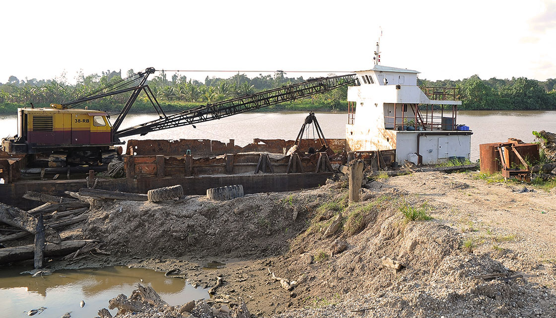 Not long after, our wheels were rattling over wooden planks again, crossing a wider bridge to Sungai Maong village, to locate the 3. Sand Factory by the river. The rusting vessel, old and reticent in its own tract, was telling its own tale over generations of sanding activities. The villagers working here are among the Chinese, Malay and Iban tribes. Like the ironwood log bridge connecting the extraction vessel from the quayside, Kuching’s infrastructure development will stand the test of time.