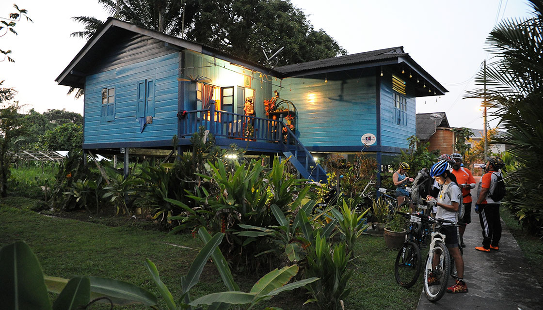 Down the bridge, we cycled another 4km along kampung houses to search for the one that stands out among the rest, and finally making a turn from Jalan Merdeka. We knew it when we saw it. True blue in color, in an earthy background, the house towered over us and our parked bicycles, showing off its 30-year-old heritage in modern coating. It is the epitome of Sarawakian homes today, evolving and staying true to its roots—an enduring image to end our kampung journey with.